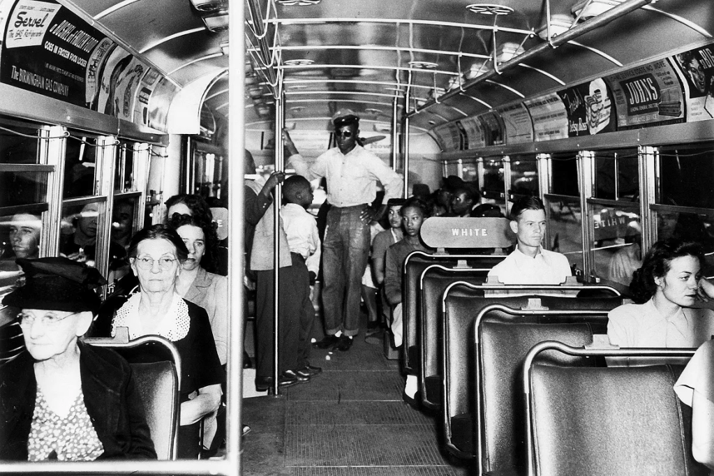 Le premier décembre 1955, Rosa refuse d’obéir au chauffeur de bus qui lui demande de laisser sa place à un homme blanc, en rentrant de son travail. Elle reste calme bien que le chauffeur la menace d’appeler la police.