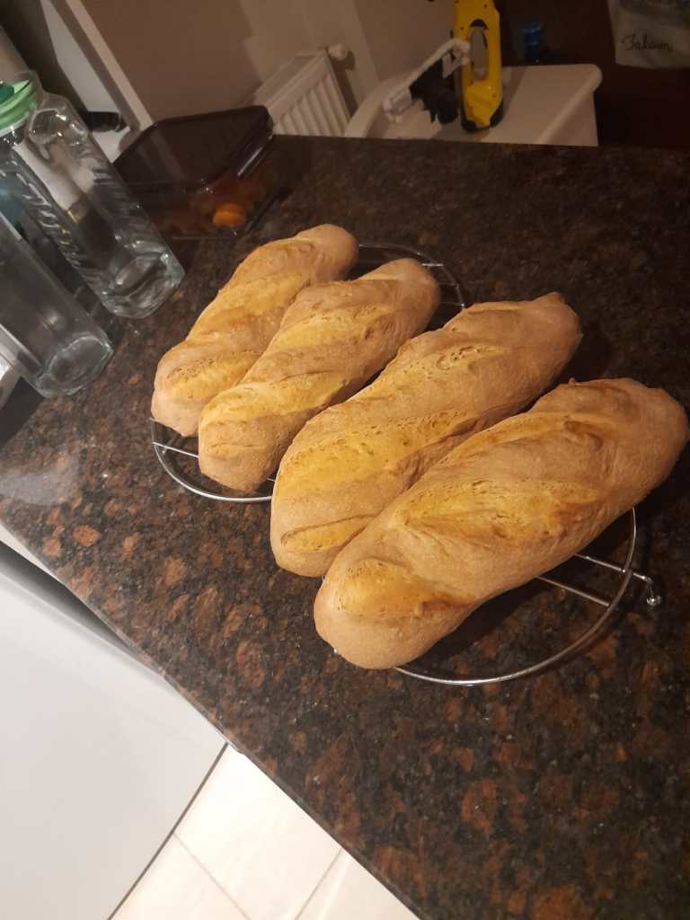 - Enfin, à l’aide d’un couteau bien aiguisé, faites des incisions sur vos pains, puis laissez les cuire environ 20-25 minutes dans le four que vous avez préchauffé à 230°C. D’ailleurs, il y a une astuce que je voudrais souligner en particulier : avant de commencer à chauffer le four, n’oubliez pas de mettre de l’eau dans un récipient résistant à la chaleur sur le fond du four. La vapeur d’eau est très importante pour la cuisson douce de vos pains.