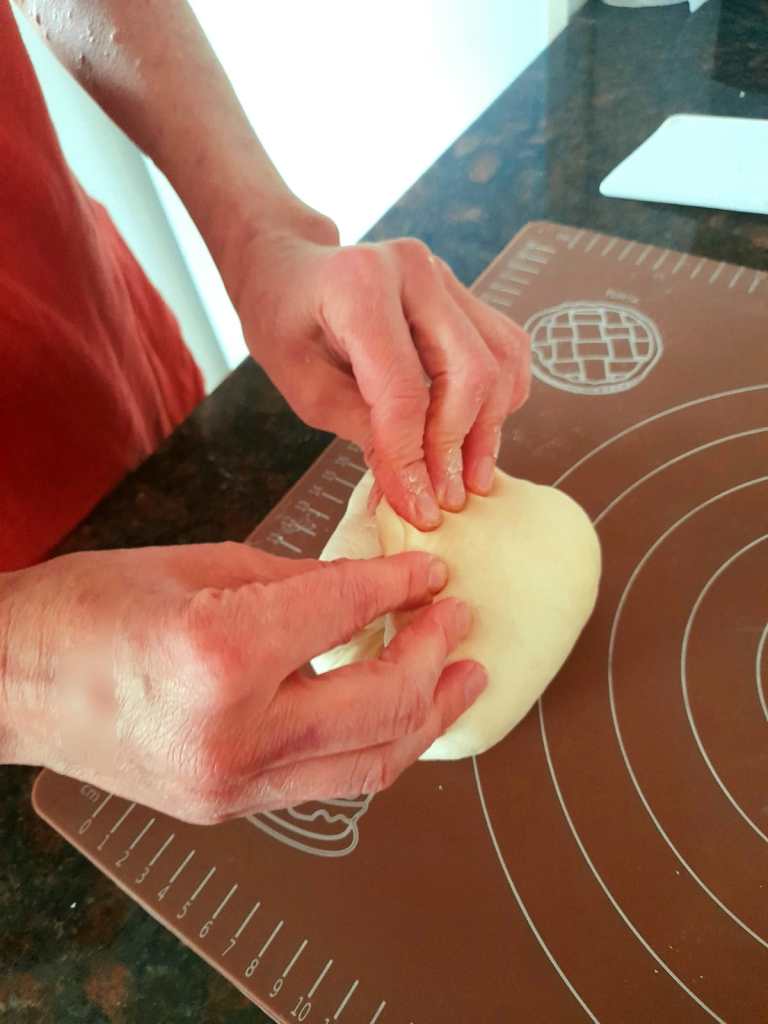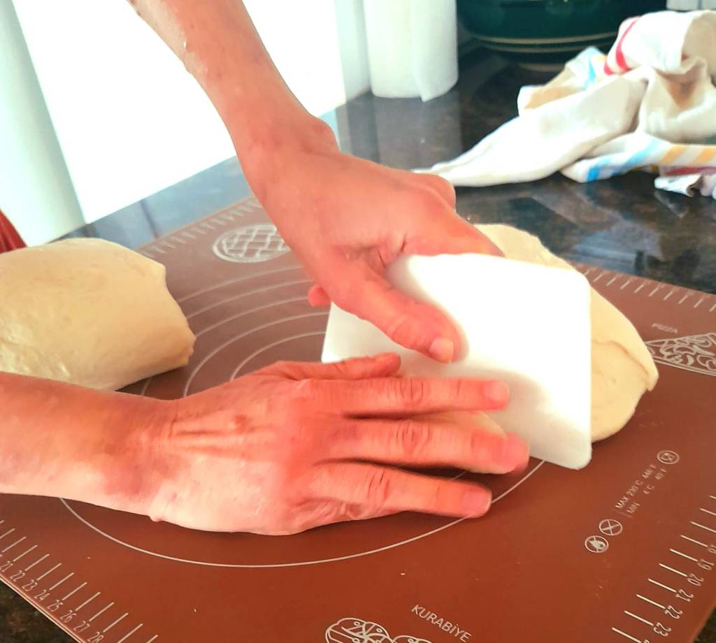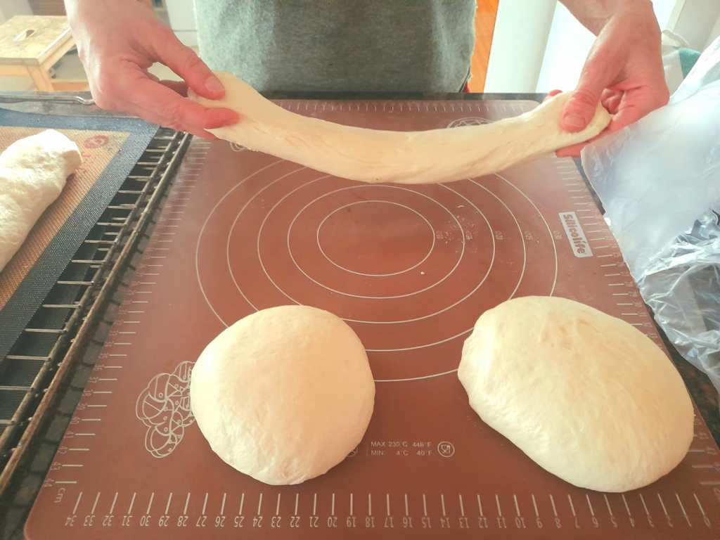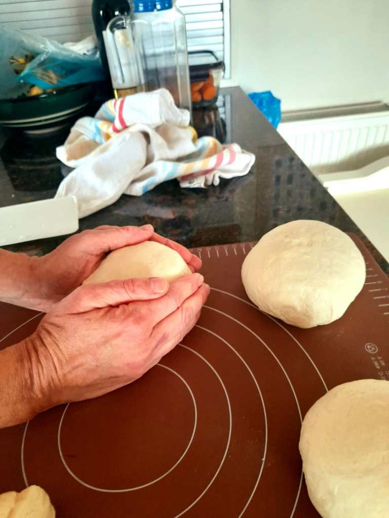 - Tournez la pâte que vous avez divisée en plusieurs boules, farinez beaucoup pour qu’elle ne colle pas à vos mains et au comptoir.