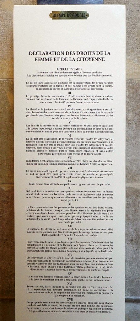En 1791, elle publie la brochure par laquelle elle deviendra célèbre : La Déclaration des Droits de la Femme et de la Citoyenne.