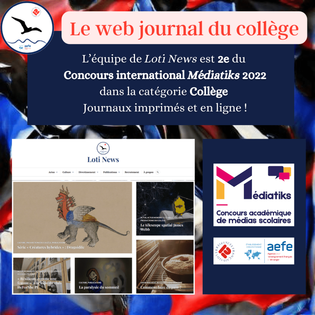 L’équipe de Loti News vient d’être désignée lauréate du deuxième prix du journal imprimé ou en ligne – Collège au concours « Médiatiks International 2022 », concours académique de médias scolaires organisé par le CLEMI.