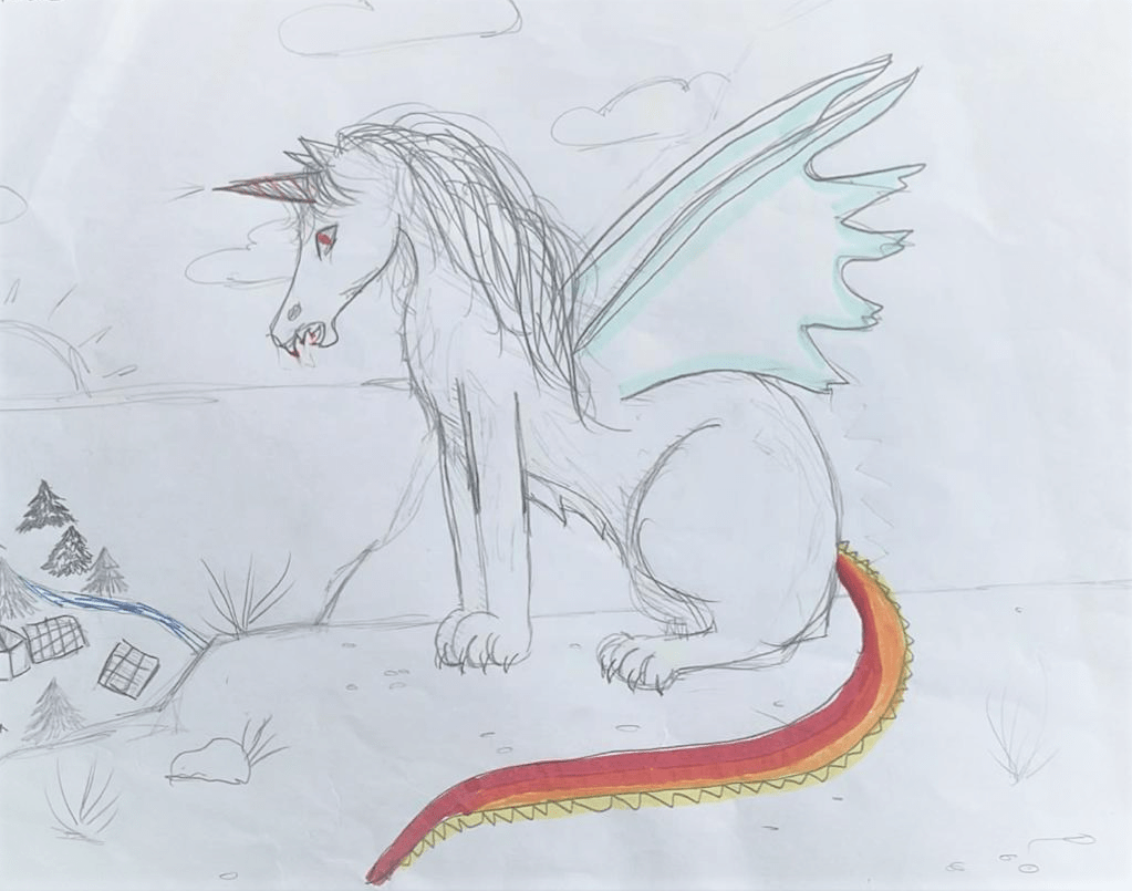 Il existe, dans les hautes montagnes, un immense animal. L’Equeo Dracus est une créature hybride: une tête de licorne, des ailes de cygne, un corps de lion allongé par une queue de dragon. Cette bête ne mue jamais.