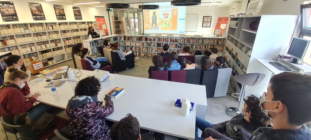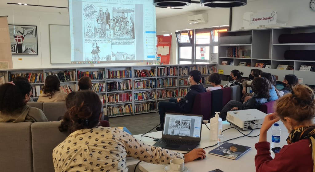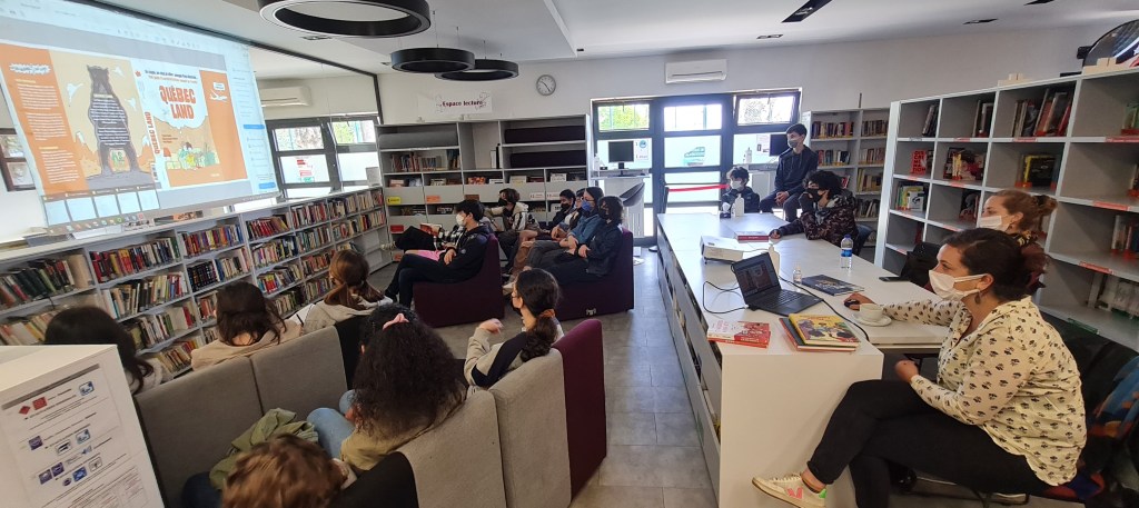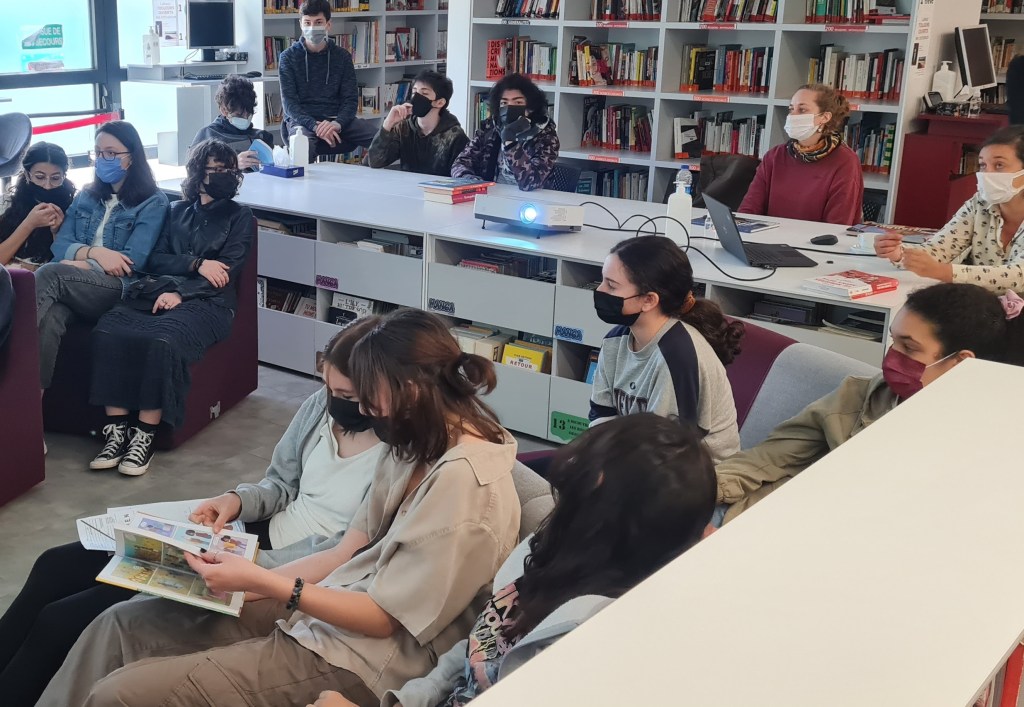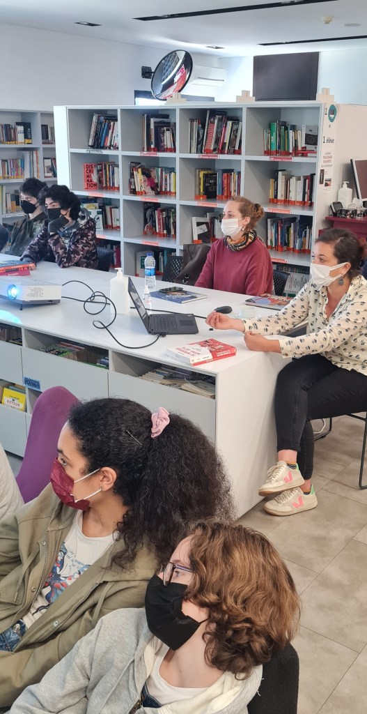 Le mercredi 27 avril, avant les vacances de printemps, les 3A ont eu la chance de rencontrer au CDI [en collaboration avec la médiathèque de l’Institut français de Turquie, antenne d’Istanbul], durant une petite heure, une intervenante se nommant Aude Massot qui réalise des bandes dessinées documentaires : elle est plus précisément une auteure spécialisée dans le roman graphique de reportage.