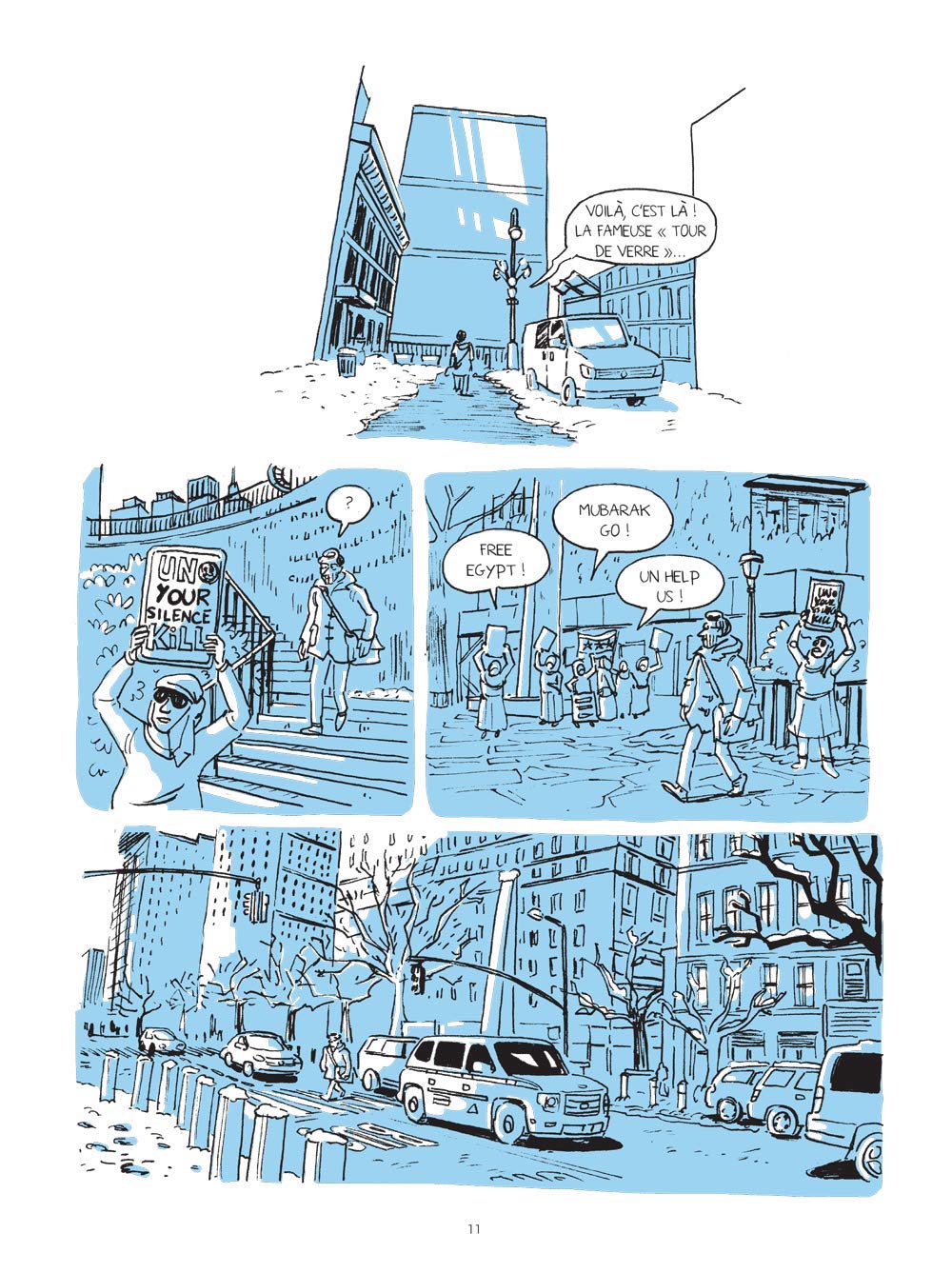 Par exemple, la BD “Une Saison à L’ONU” raconte d’une manière ironique à travers les yeux de Karim Lebhour, un correspondant de presse, les grandes institutions de l’ONU telles que le Conseil de Sécurité et le problème du droit de véto par exemple.