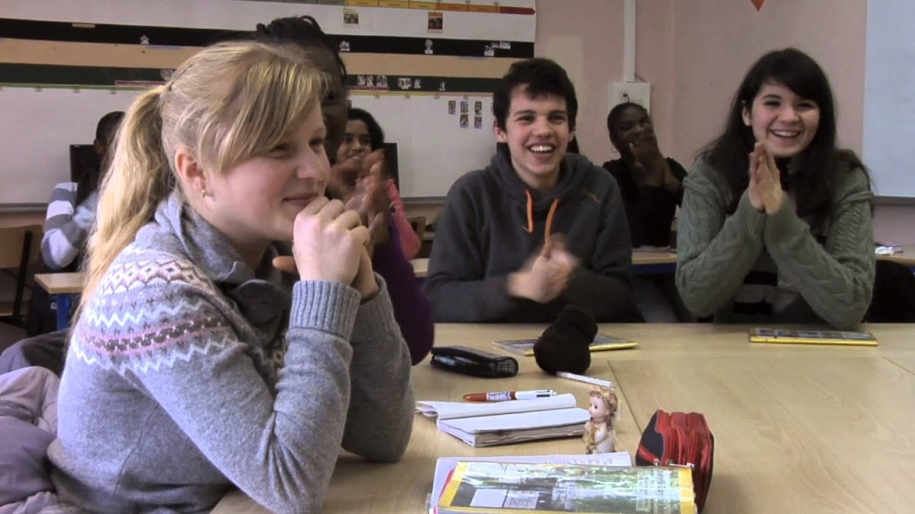 L’atelier cinéma a permis aux classes de troisième d’aborder le genre documentaire d’une manière dynamique grâce à l’énergie débordante de Mme Vanderschelden qui est parvenue à établir spontanément un excellent dialogue avec les élèves. Ces derniers ont pu exprimer leur ressenti, développer leur regard critique et découvrir les difficultés d’intégration de jeunes immigrés dans une classe d’accueil. Il y ont retrouvé des situations proches des leurs comme les difficultés d’apprentissage du français, la solidarité, les conflits entre les élèves ou dans la famille et ils ont pu réfléchir au rôle de l’école.