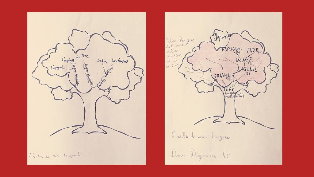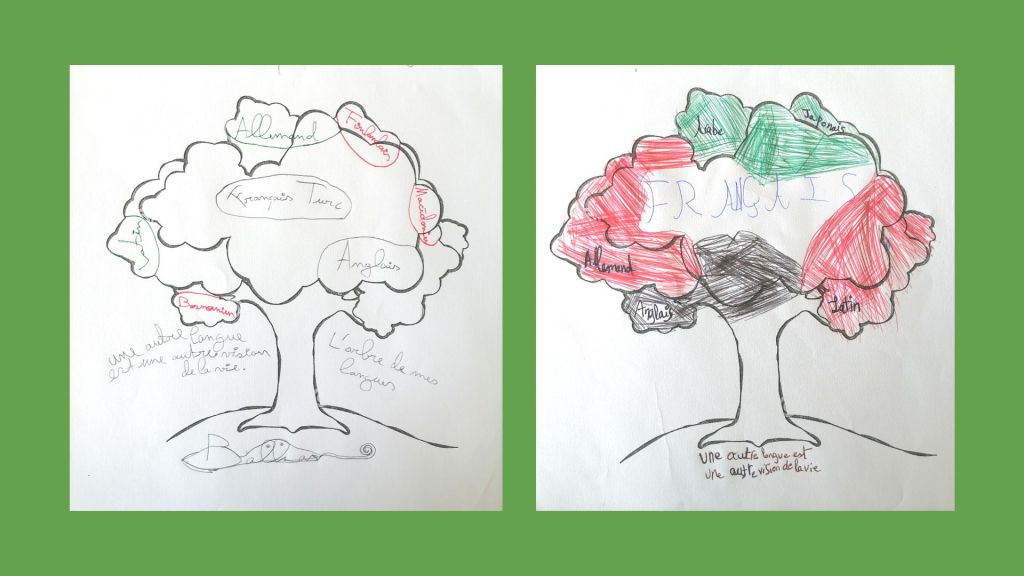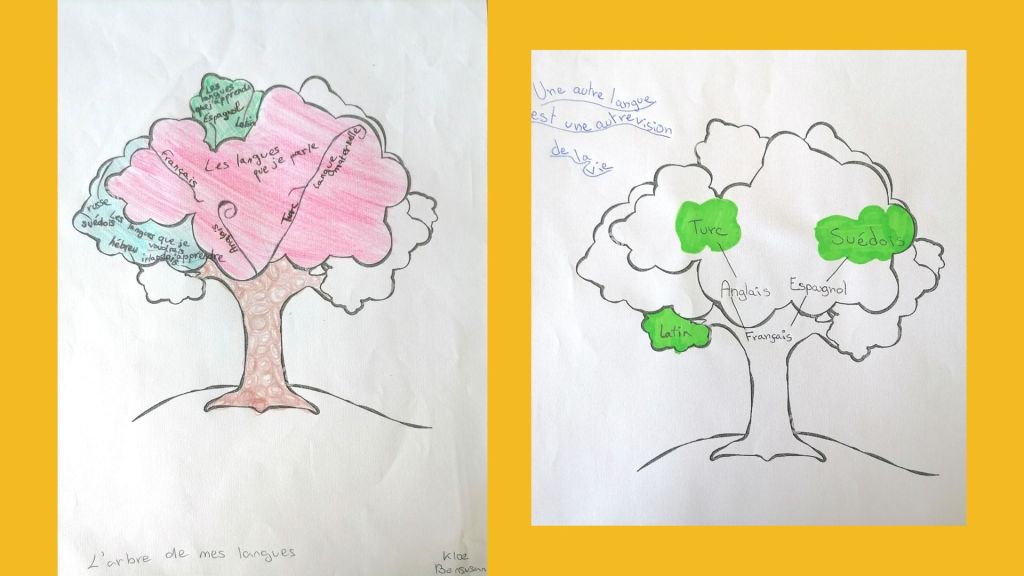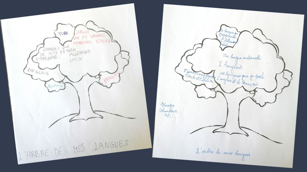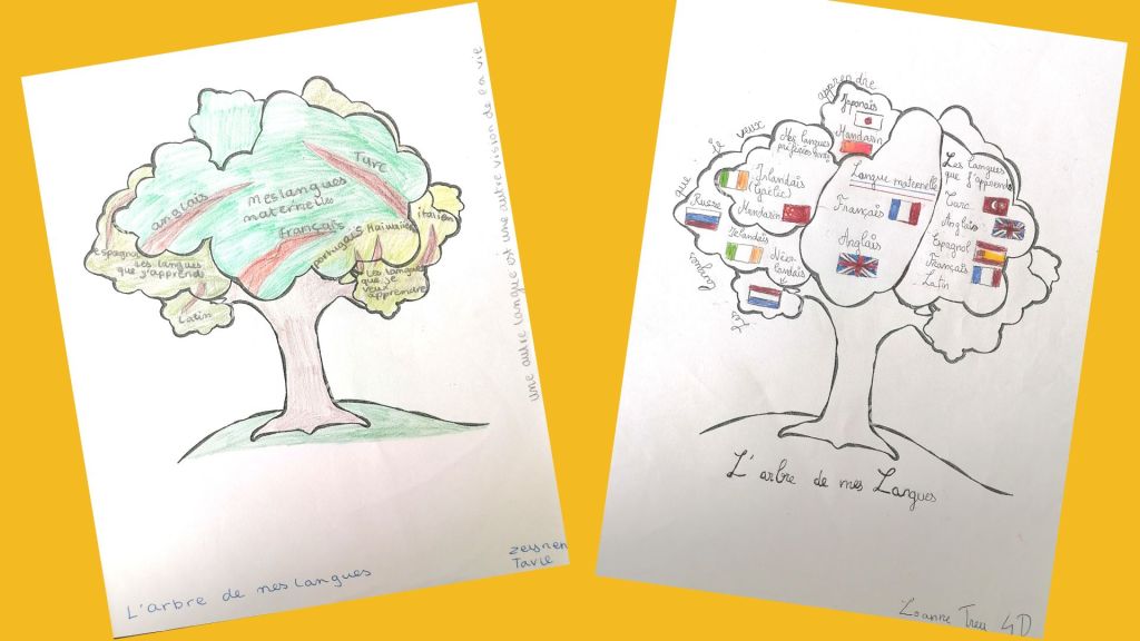 En début d’année scolaire, à l’occasion de la « Journée européenne des langues » le 26 septembre, les latinistes de 4e ont amorcé une réflexion sur la représentation qu’ils se font des langues qu’ils maîtrisent ou étudient, voire qu’ils projettent d’apprendre. En ce « Mai des langues« , des arbres sont venus représenter ces liens intellectuels et affectifs tissés : les reflets des histoires singulières d’adolescences construites au gré d’un plurilinguisme qu’elles ne cessent d’enrichir ! #maideslangues