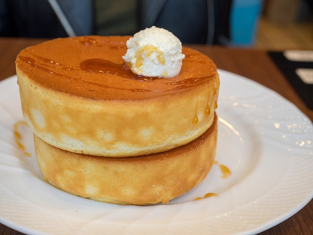 Quand le premier côté du pancake est cuit, on peut voir de petites bulles apparaître. Il faut attendre qu’elles soient nombreuses et ensuite retourner le pancake.