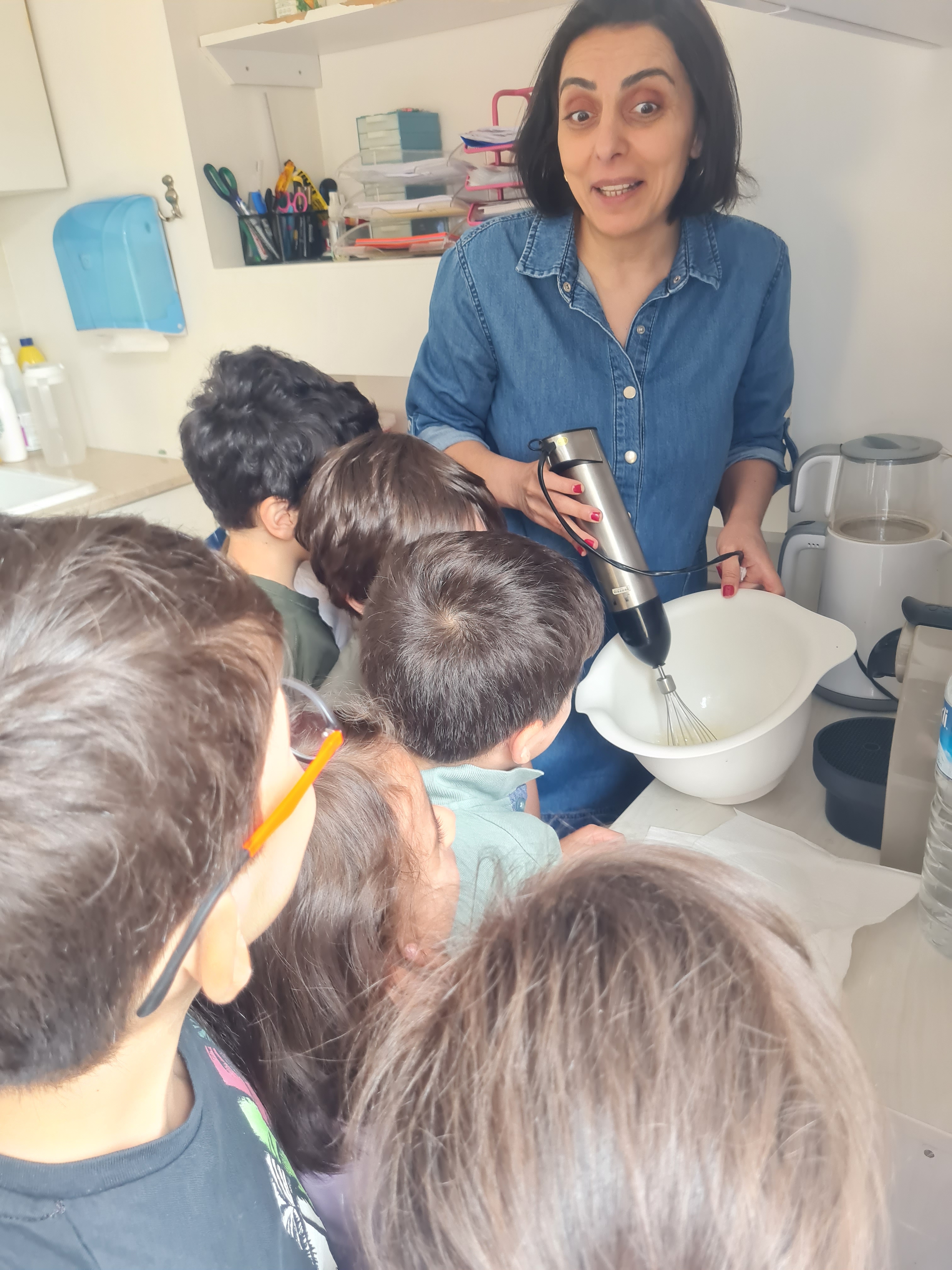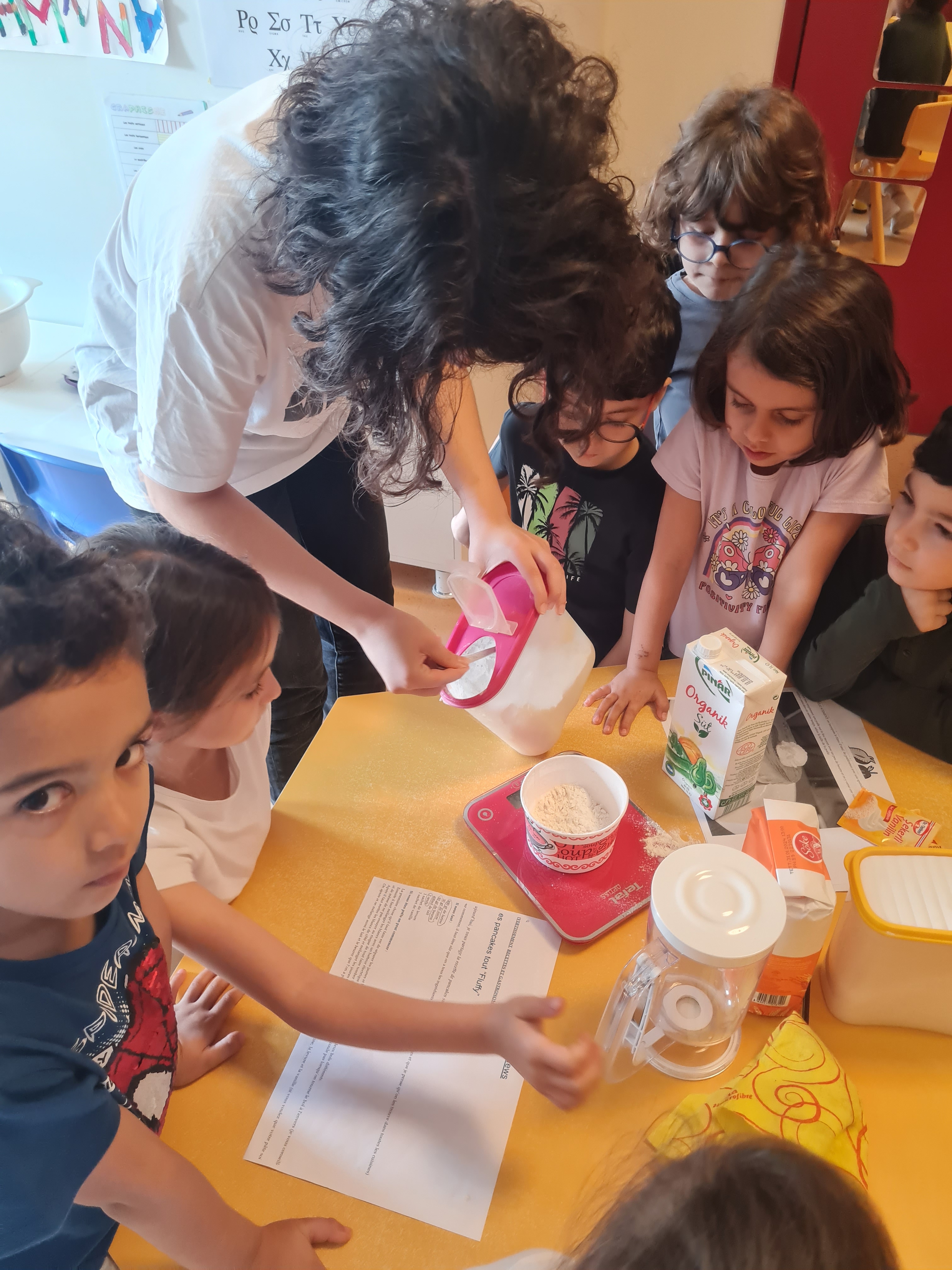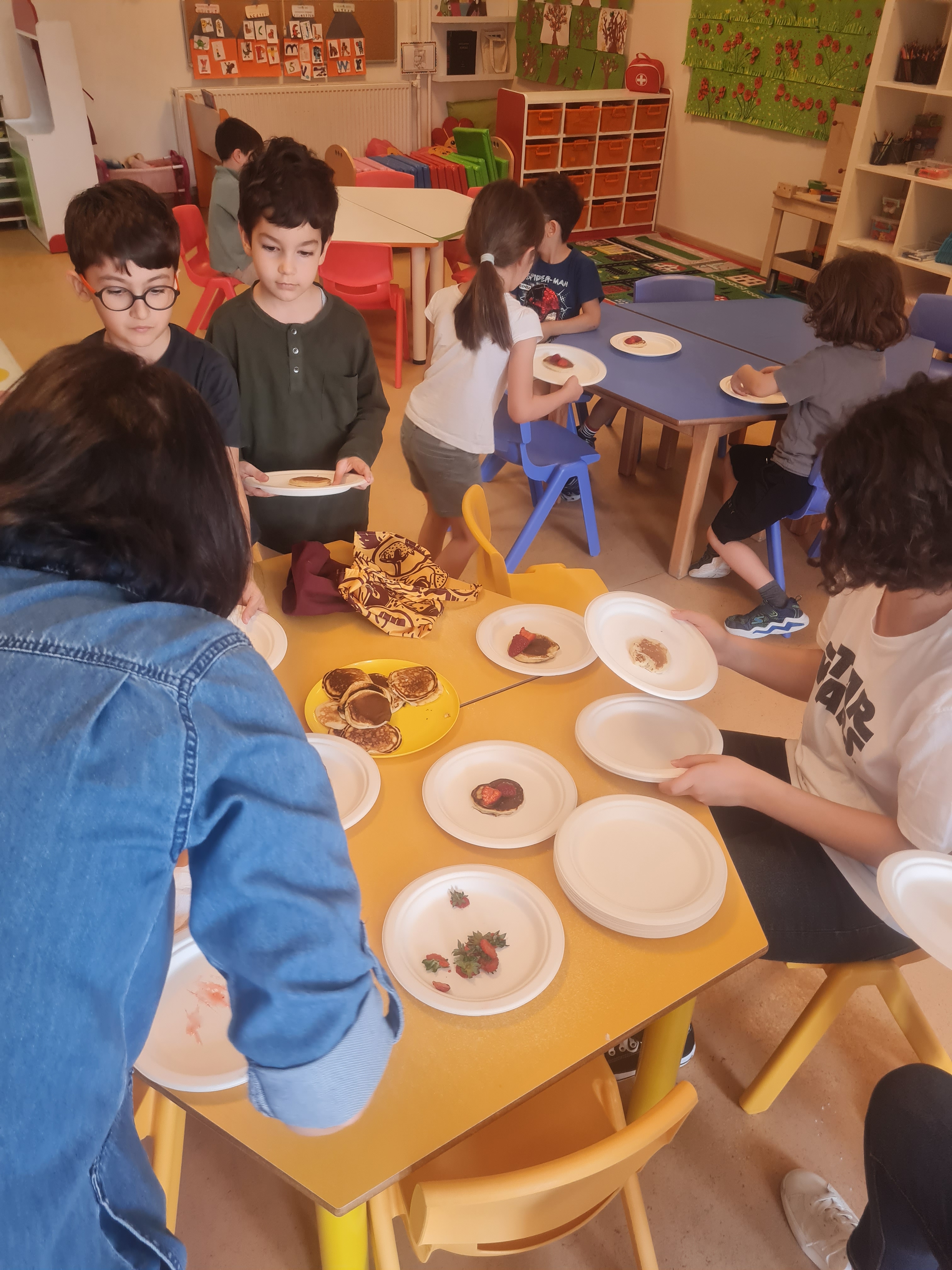 Après avoir fait la pâte, il nous restait une dernière étape avant la grande dégustation : la cuisson. Avec l’aide de la maitresse, Mme Filiz Yildiz, nous avons versé la pâte sur une plaque chauffante pour obtenir un résultat final… très bon ! J’ai eu la chance d’être la première à gouter nos pancakes ! Nous les avons enfin décorés avec des fraises, et puis nous avons tout avalé. Une expérience sympathique avec une fin délicieuse !