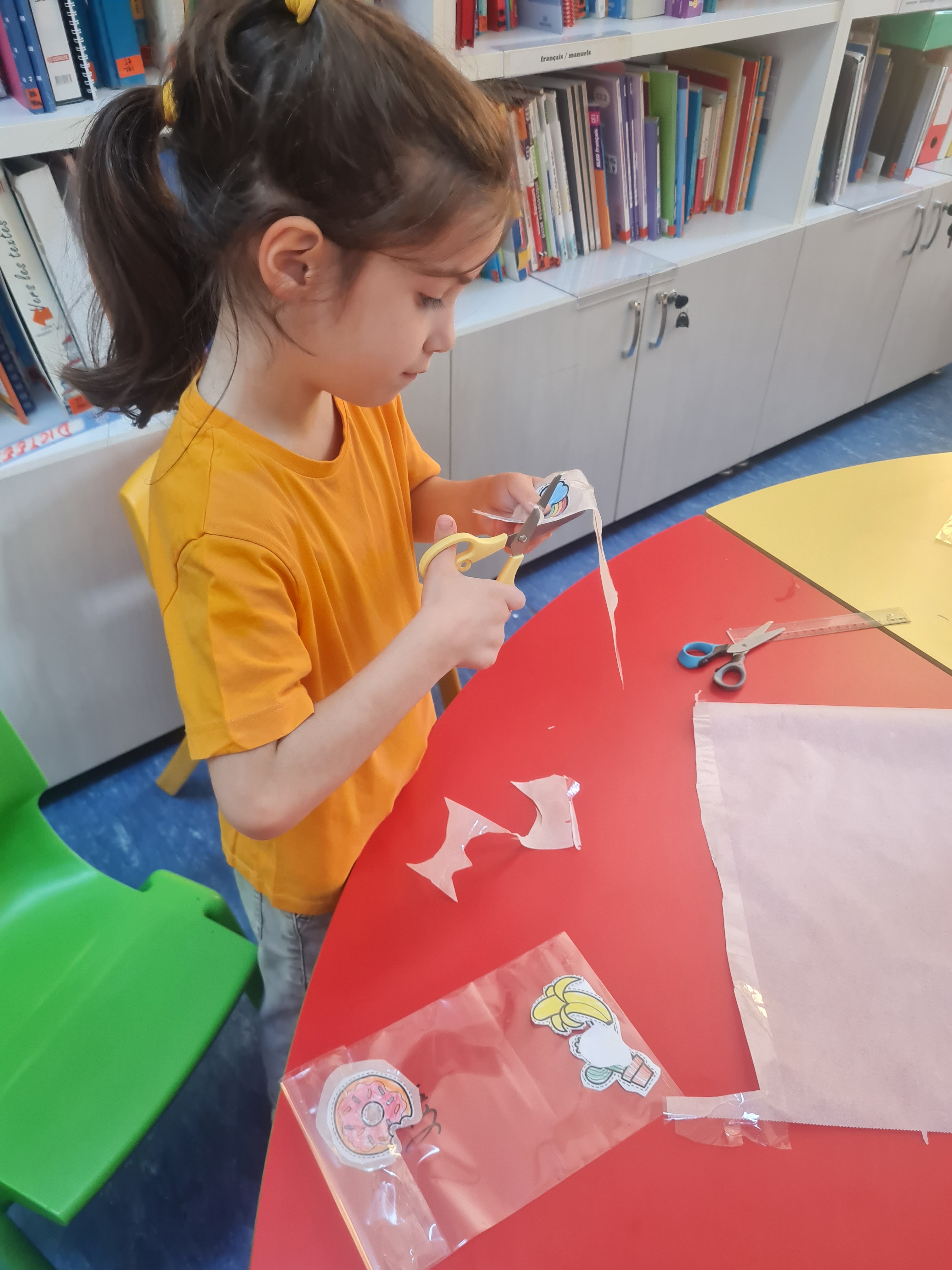 Pendant que Ece était en train de cuisiner des pancakes avec la moitié de la classe, je m’occupais de l’autre à la BCD (Il y avait bien sûr des profs qui étaient avec nous, hein). Ça s’est franchement bien passé : il n’y a pas grand-chose à dire vu que l’aide maternelle de la classe et moi étions en train de créer les autocollants avec l’aide des élèves. Bien sûr, nous n’avons pas tout fait puisque c’était les dessins que les maternelles avaient réalisés avant notre arrivée qui étaient utilisés. Le truc, c’est que comme ce sont des grandes sections, il n’y a rien qu’ils pourront refaire à la maison sans l’aide d’un adulte à part pour le dessin et le découpage. Vers 10h30 nous nous sommes réunis en classe pour que les maternelles partagent leurs ressentis et pour manger les pancakes.