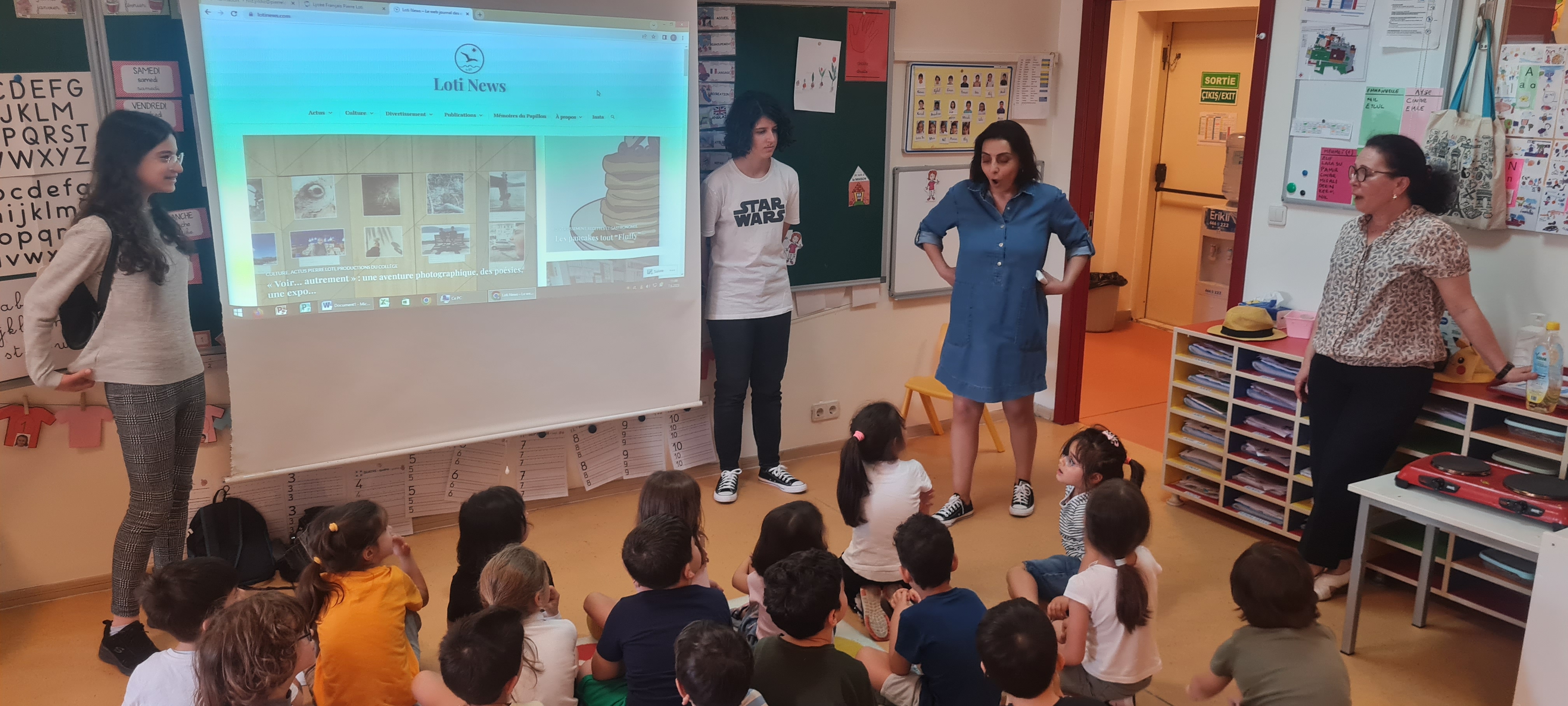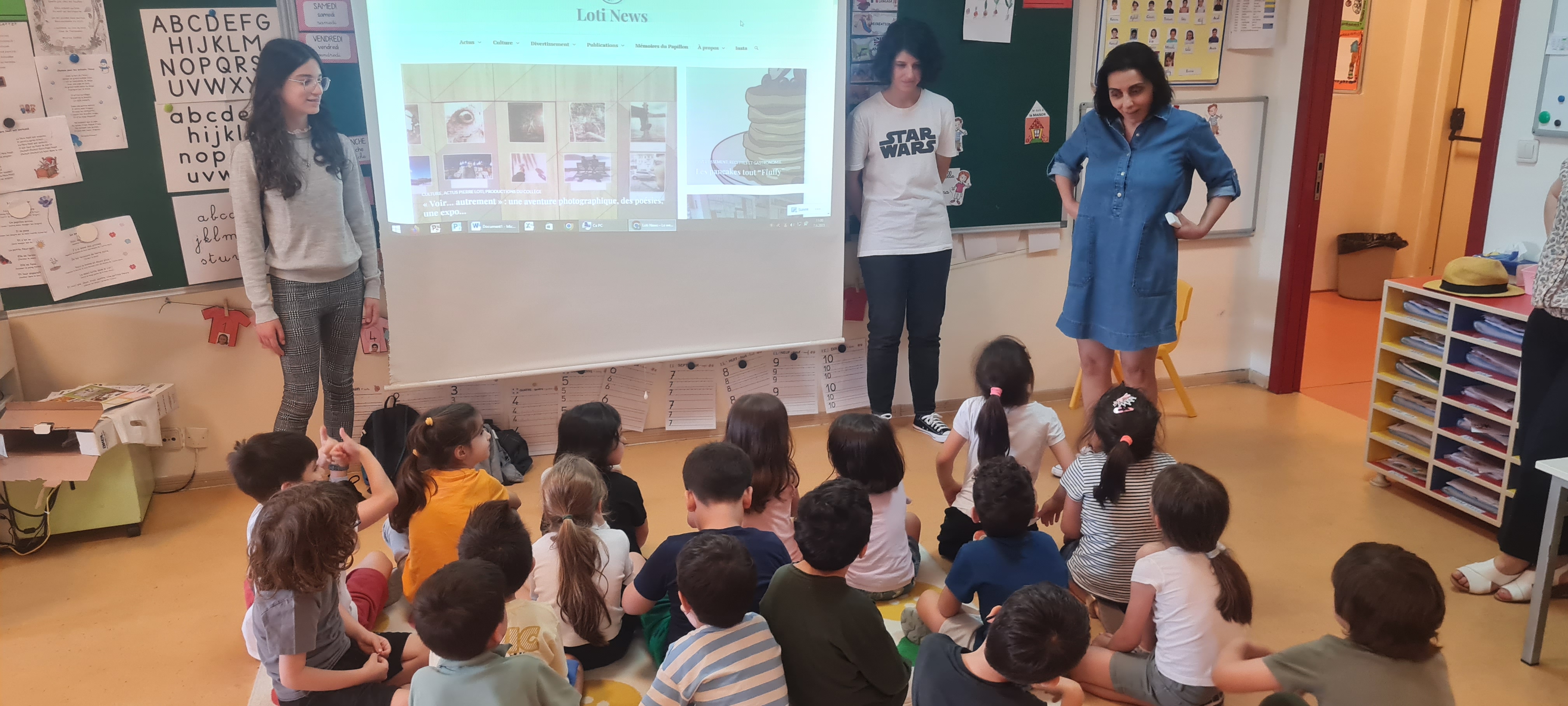 Lors de notre visite dans leur classe, nous leur avons présenté sur un vidéoprojecteur notre web journal, Loti News !