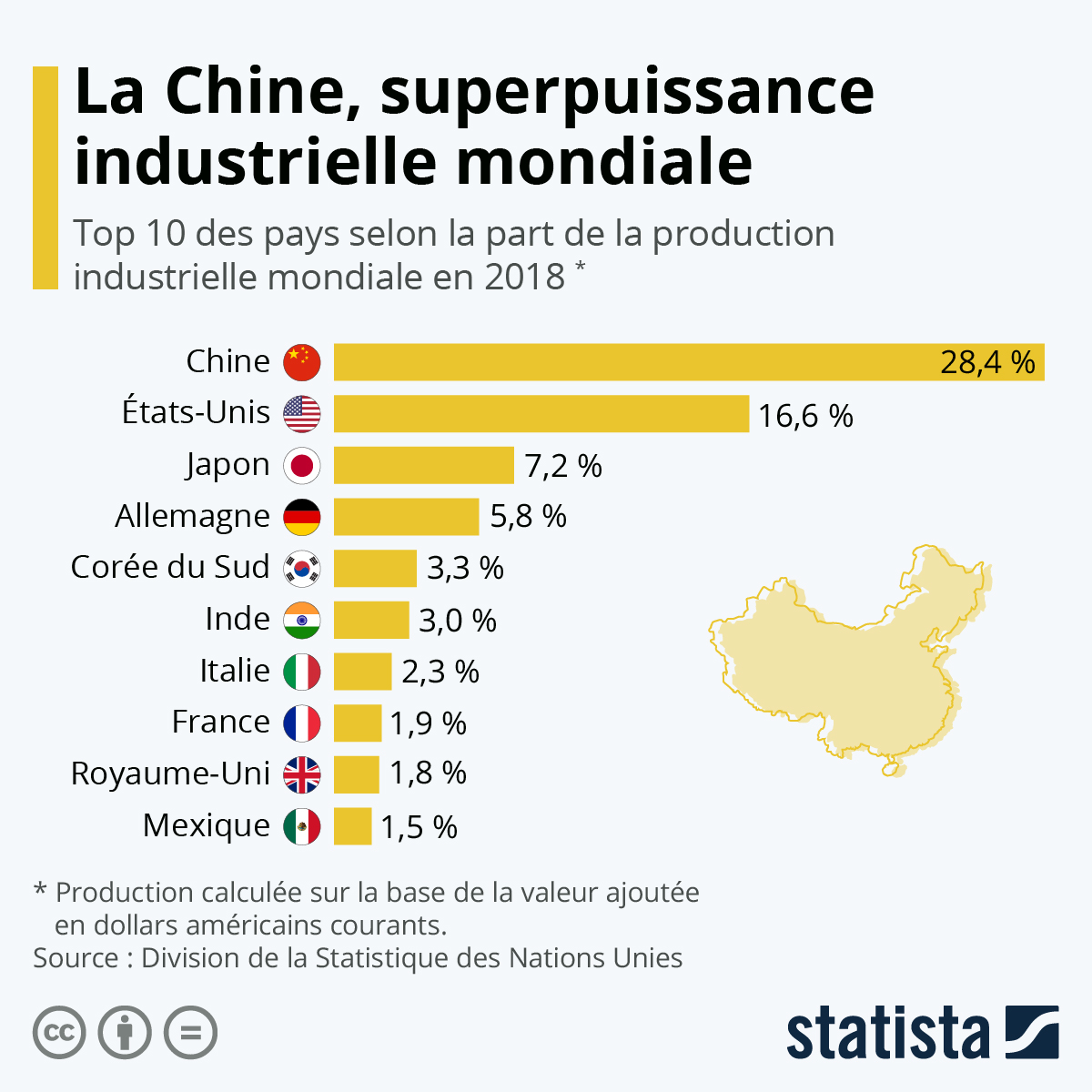 La Chine est un pays fabriquant des milliards d’objets divers. Regardez autour de vous, parmi tous les objets que vous observez, il doit au moins y en avoir cinq made in china. Comme la Chine a une importante population, elle a aussi beaucoup de main-d’œuvre.