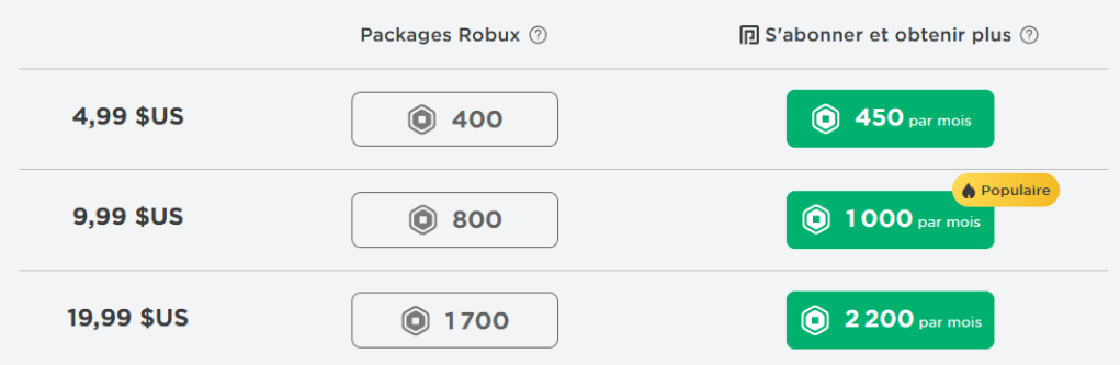 Comme dans beaucoup de jeux, on peut utiliser une monnaie virtuelle, propre à la plateforme : les Robux. Mais bon, comme nous jouons quand même dans la vraie vie… pour acheter des Robux, il faut dépenser de l’argent réel. Et comme le jeu est américain, il faut des dollars…