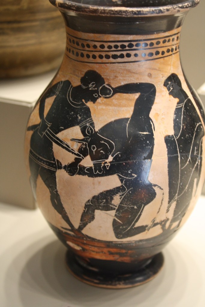 Dans la mythologie grecque, le Minotaure est une créature monstrueuse avec le corps d’un homme et la tête d’un taureau. Né de l’union entre Pasiphaé, épouse du roi Minos de Crète, et un taureau blanc envoyé par Poséidon, le Minotaure résidait dans le Labyrinthe, une structure complexe conçue par l’architecte Dédale. Chaque année, Athènes devait envoyer sept jeunes hommes et sept jeunes femmes en sacrifice au Minotaure. Le héros Thésée finit par tuer le Minotaure avec l’aide d’Ariane, la fille de Minos, qui lui donna un fil pour retrouver son chemin dans le Labyrinthe après le combat. Le Minotaure incarne la dualité de l’homme et de la bête, ainsi que les thèmes de la monstruosité et du défi héroïque.