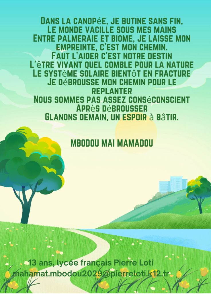 Cette année, notre lycée Français Pierre Loti d’Istanbul a participé avec enthousiasme (et succès !) au concours « Dis-moi dix mots », organisé par l’Institut français de Turquie dans le cadre du Mois de la Francophonie. Ce défi annuel invite les participants à jouer avec la langue française à travers une production littéraire, artistique ou numérique autour de dix mots choisis chaque année par le ministère de la Culture français. En 2025, le thème portait sur « l’écologie », mettant en avant la richesse du vocabulaire français.